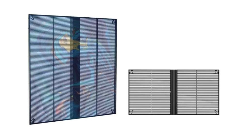 ガラス面に設置しても外が見える “スケルトンタイプ” のLEDビジョンです。